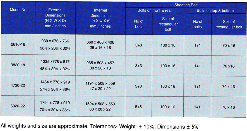 BIS Listed Safes : Also available are a range of safes as per TRTL 15X6 / TRTL 60 X 6 of BIS standards.